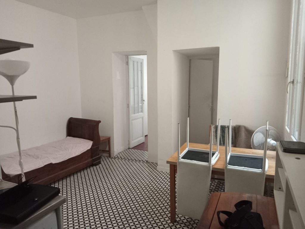 Il se compose d’un coin cuisine et salle à manger d’environ 15 mètres carrés, avec salle de bain d’environ 3 mètres carrés, puis deux chambres d’une dizaine de mètres carrés chacune.