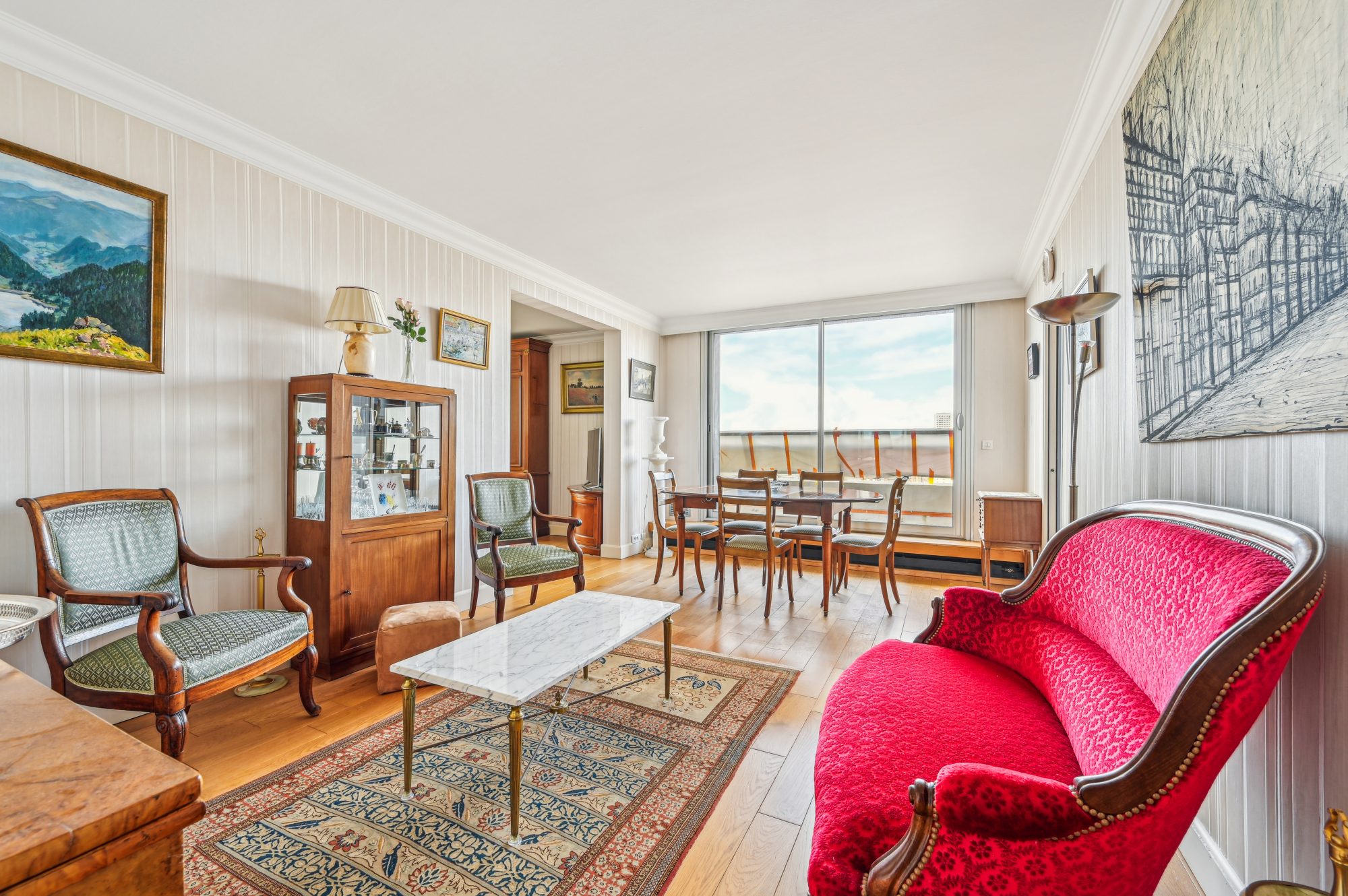 Un double séjour, 3 chambres, une cuisine, une salle de bain avec WC, une salle d’eau, des WC indépendants, un dressing, une entrée, un couloir. Ce bien est proposé également avec sa cave et une place de parking intérieur, accessibles par ascenseur.
