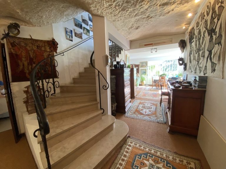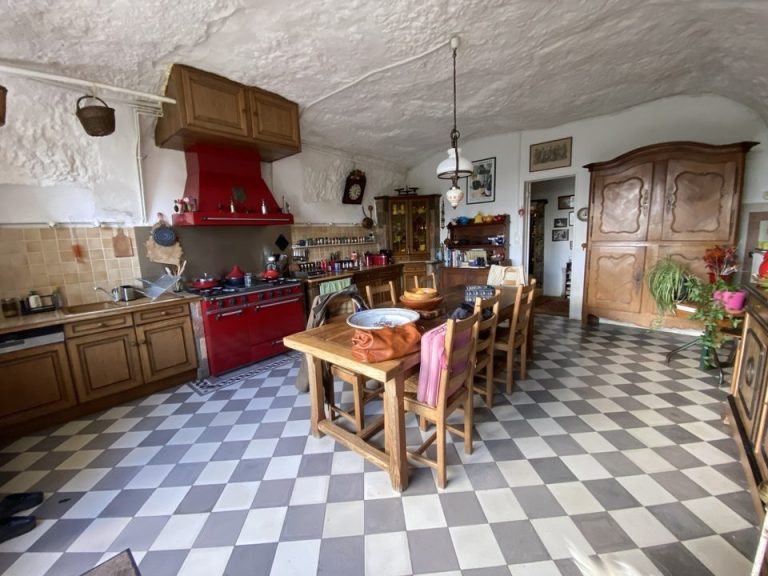 Véritable coup de cœur pour cette habitation semi troglodyte, offrant des volumes et une exposition plein sud sur un jardin arboré et la campagne à l’horizon.