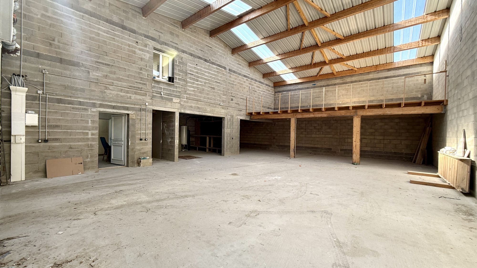 865 M2 décomposés en 4 locaux types ateliers d’environ 200 m² chacun dont 2 avec mezzanine. Chacun composé de bureau et sanitaire. 2 Appartements T3 d’environ 70 m² avec entrée indépendante. Terrain 3530 m² constructible . année de construction : env. 2000 très belle hauteur sous plafond Construction parpaing, ravalement partiel, toiture bardage, état général très bon Normes et conformités à jour sécurité incendie, accessibilité PMR, normes ICPE) Présence de portes métalliques motorisées.