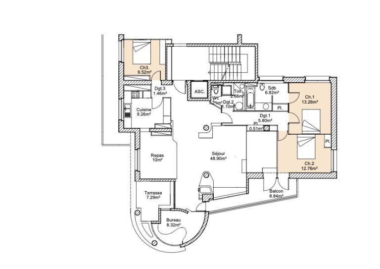 Dès l’entrée, vous serez subjuguer par la variété des volumes jouant avec les courbes et les lignes dans une forme de citation qui tient à l’inspiration Post Modernisme et non à l’imitation.