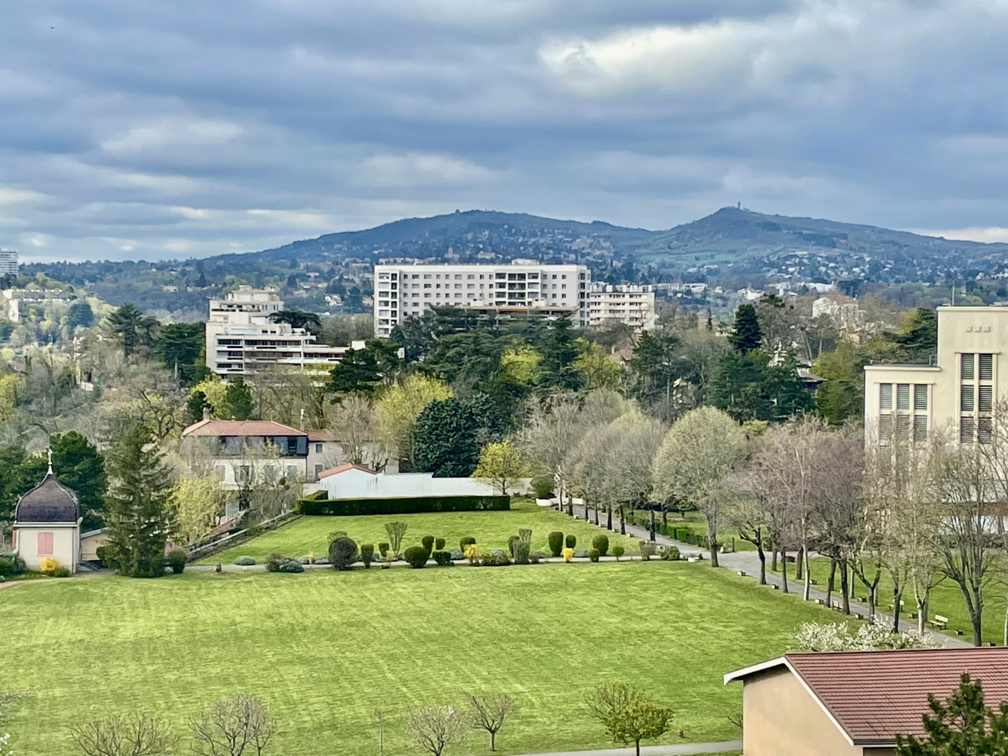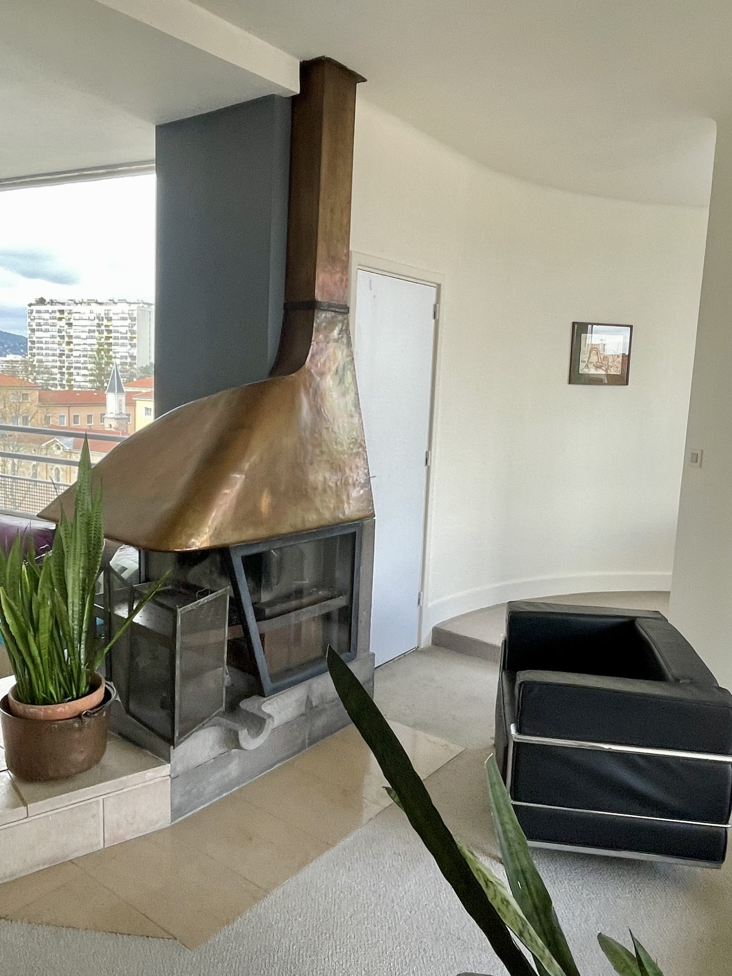 L’appartement avec terrasses propose une incroyable et magnifique pièce de vie de 65 m2 avec une intégration extremement subtile et intime de toutes les différentes fonctions ( Terrasses, Bibliothèque, salle à manger, séjour, bureau, espace cheminé ) chacun de ces espaces proposant des panoramas uniques de la colline de la Croix Rousse jusqu’à la colline de Fourvière et les monts du Lyonnais.